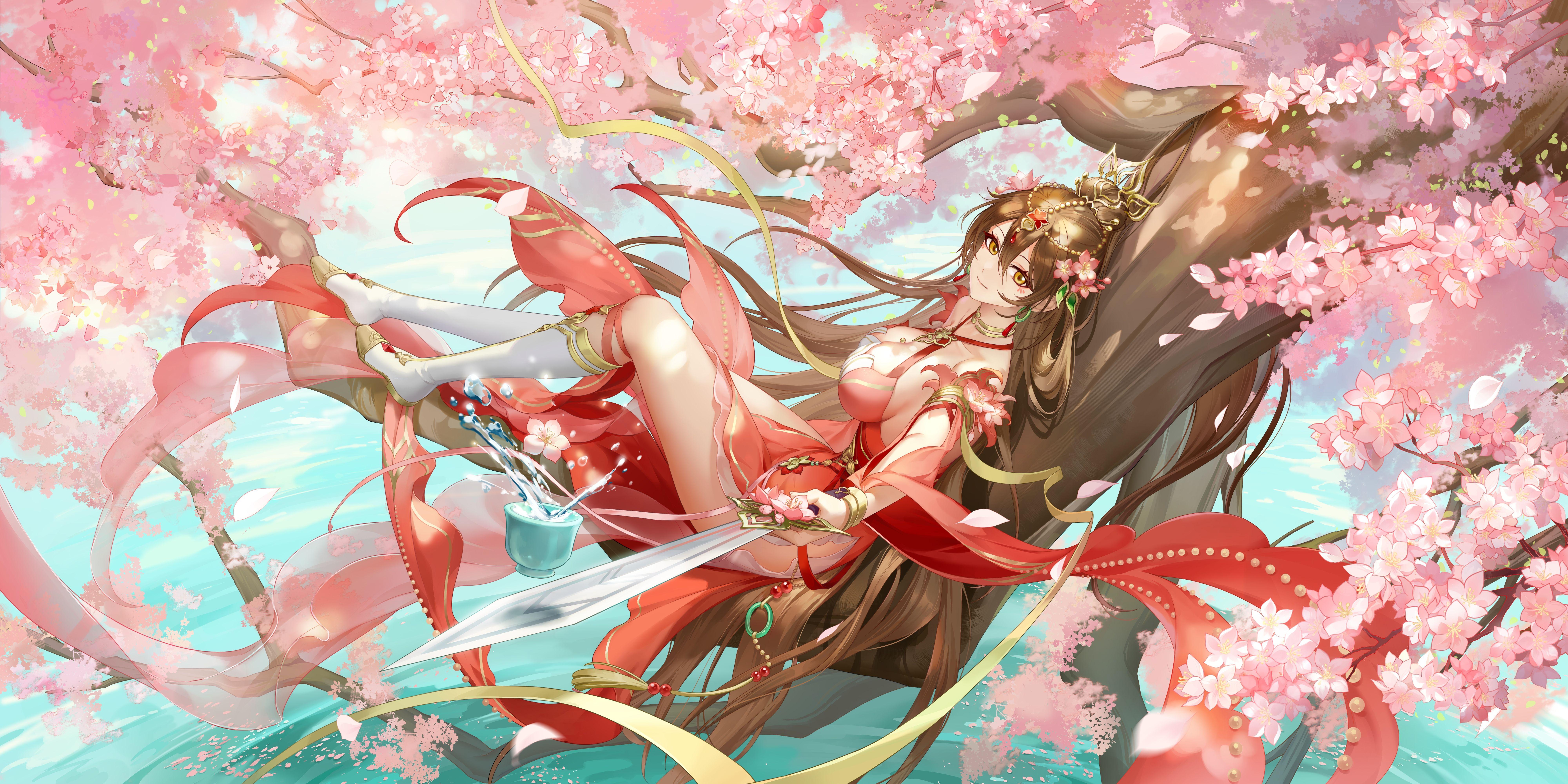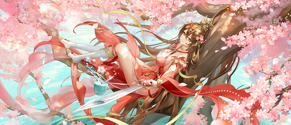 桃花岛主不问世上俗务,只管自在逍遥。剑锋无尘,只裁云、断水、扫落英。醉倒桃花前,不知岁月深。碧海潮生处,芳菲已纷纷。