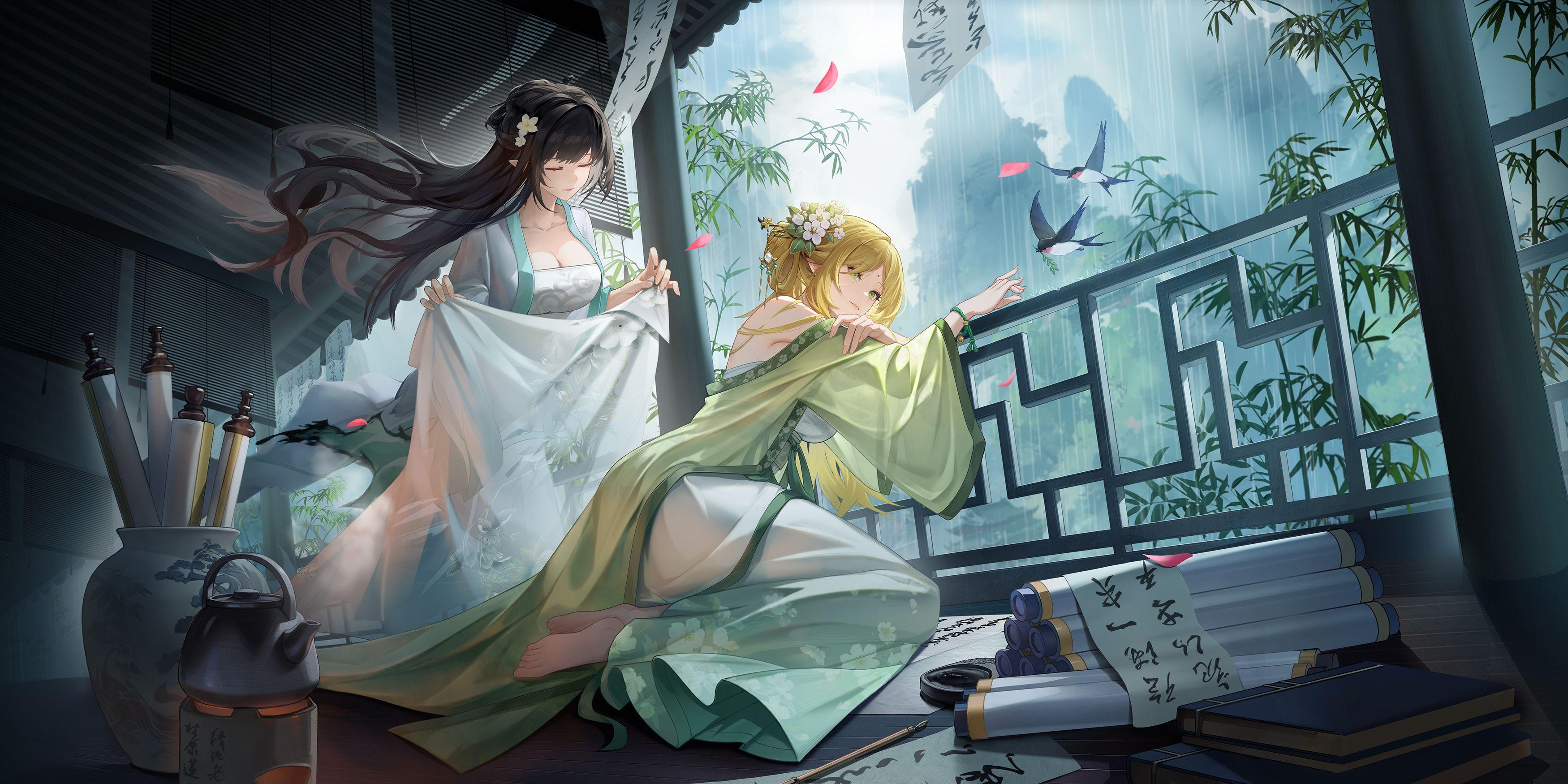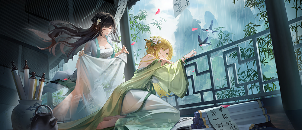 疏影横窗春尚浅,砌下梨花迟未发。她展卷蘸笔,凭窗远望,将远山薄雾尽收一纸新词中。