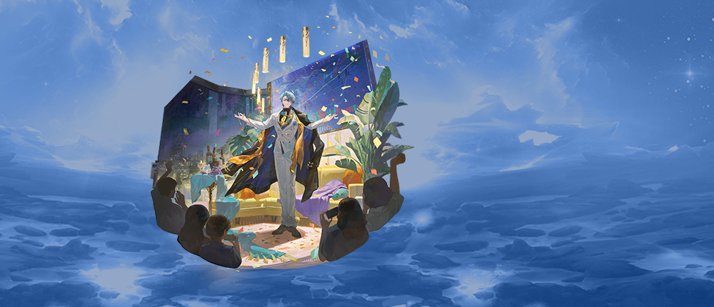 香颂站在舞台之上,聚光灯随节拍跃动闪耀,美妙旋律流淌不歇,满载快乐的歌声在乐园中四散飞扬。