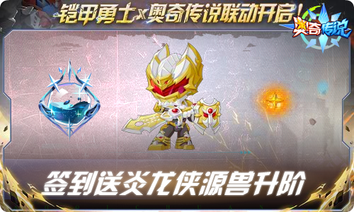 7、【1月16日-3月19日】【铠甲勇士X奥奇传说联动】战斗吧!炎龙侠——完成勇士试炼战斗获得炎龙勋章,达到指定进度可领取豪华奖励:炎龙侠装备专属元魂*2、聚星石*200、经验元魂*200、金币*80000!
